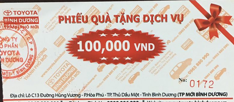Giảm giá và miễn phí các dịch vụ tại Toyota Bình Dương